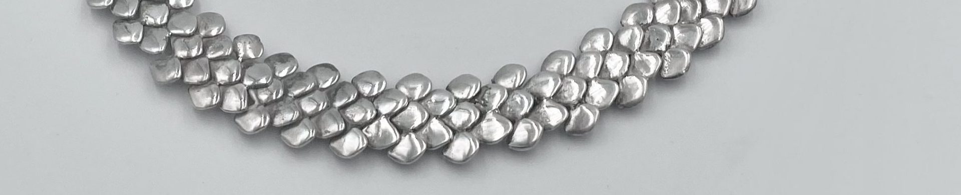 The smooth contours and gleaming silver tones create a piece that speaks volumes in understated luxury. Drape yourself in our Silver Viper pieces